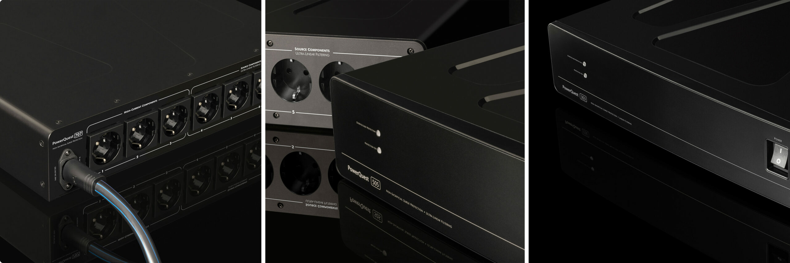 A PowerQuest 303, 505 és 707 egyaránt 7db aljzatot kapott: 3db nagyáramú konnektor a végfokok, aktív hangfalak, erősítők, mélynyomók, a további 4db lineáris szűrésű konnektor az állandó áramú forráskomponensek (TV-k, média-streaming eszközök, analóg/CD lemezjátszók, előerősítők csatlakoztatására szolgál. Minden csatlakozó izolált és a csatlakoztatott eszközre optimalizált, ami fokozza a PowerQuest képességét a hálózati problémák összetett hatásainak hatékony kezelésére. A rádiófrekvenciás zajok és egyéb indukált zajok, amelyek jelen vannak a közműtől származó váltakozó áramban, a minden váltakozó áramú kábelen és a kábelben jelenlévő zajok és az a rendszer komponensekben keletkező zaj, amely a PowerQuest kimeneti áramköreibe "visszaáramlik" egyaránt megfelelő „kezelést kap”.