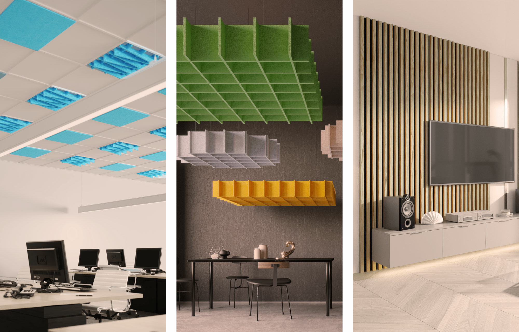 A méréseken alapuló problémás frekvenciák kezelésével, de mindeközben az abszorb és diffúz felületek összhangjának megteremtésével, a hallgató szoba céljainak leginkább megfelelő utózengési idő beállításával, basszuscsapdák, Helmholtz rezonátorok, abszorberek, diffúzorok installálásával minden esetben drámai javulás érhető el. Basszuscsapdákból kifejezetten sarkokba helyezhető „háromszög” és akár sarkokba akár a hátsó vagy oldalfalak mellé pozícionálható hengeres kialakításúak is rendelkezésre állnak. Csakúgy, mint a különböző vastagságú és sűrűségű csillapítóanyagokkal gyártott abszorberekből vagy diffúzorokból, amelyeket nemcsak falra lehet szerelni, hanem akár mennyezetről is le lehet lógatni. Arra az esetre is vannak megoldásaink, amikor nem áll rendelkezésre egy dedikált helyiség, zene vagy moziszoba csak egy nappali vagy egy kisebb tér. Az akusztikai elemek egy része akár fotórealisztikus nyomatokkal is díszíthető, a legköltséghatékonyabb megoldásoktól a legprofesszionálisabb akusztikai kezelésig mindenre van válaszunk – közösen mindig megtaláljuk az ügyfeleink elképzeléseinek legmegfelelőbbet. Az akusztikai mérés útján pontos képet kaphatunk a helyiségről, így ennek tudatában foghatunk neki a javításnak, tökéletesítésnek.